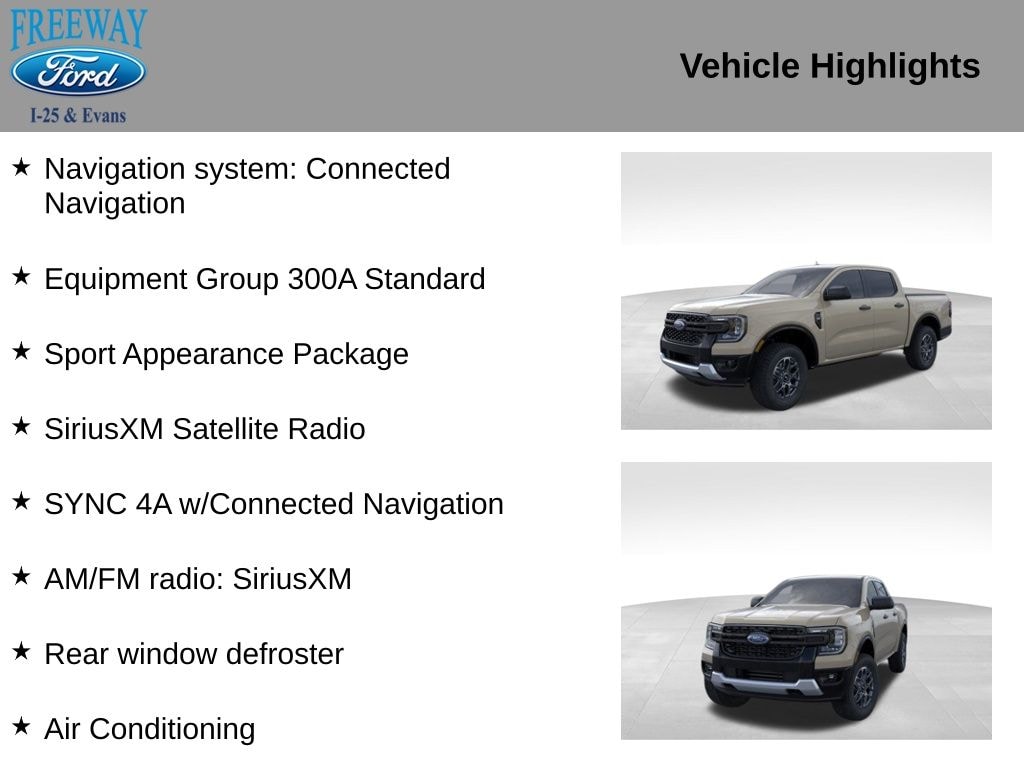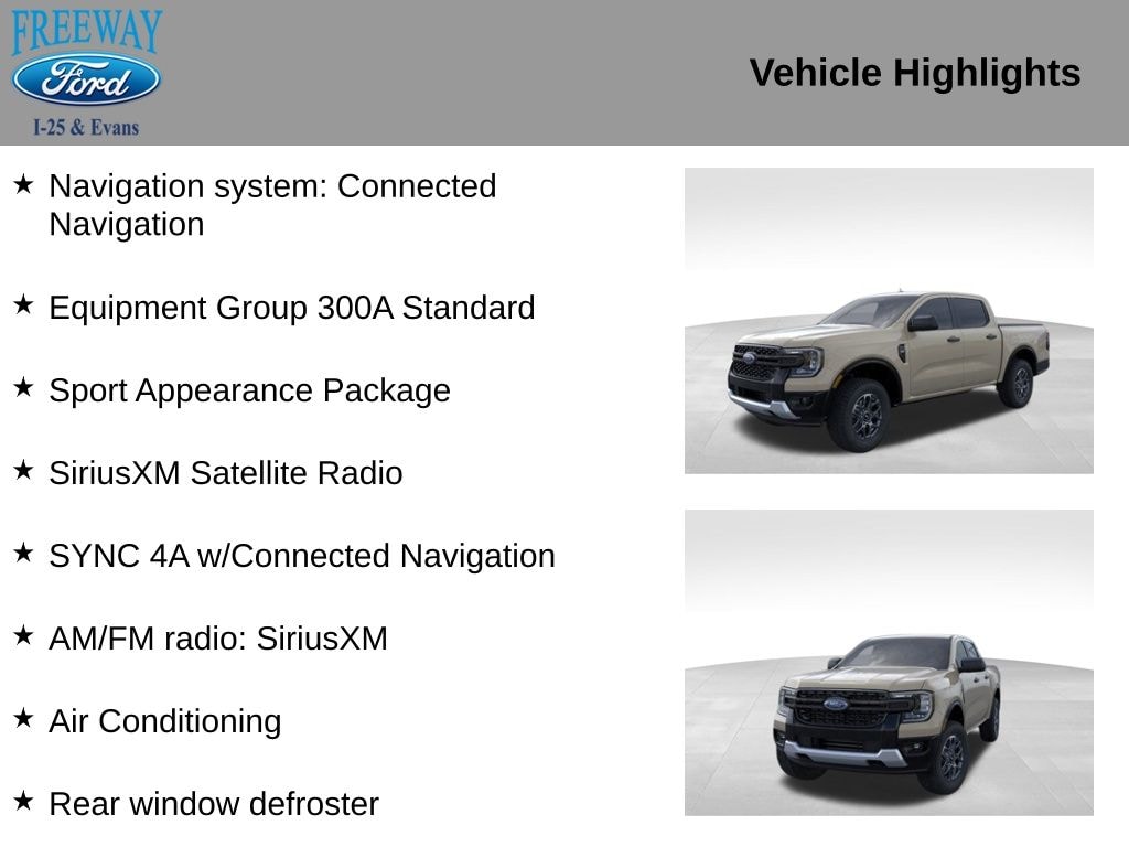 New 2025 FordRanger XLT Truck EcoBoost I4 GTDi DOHC Turbocharged VCT