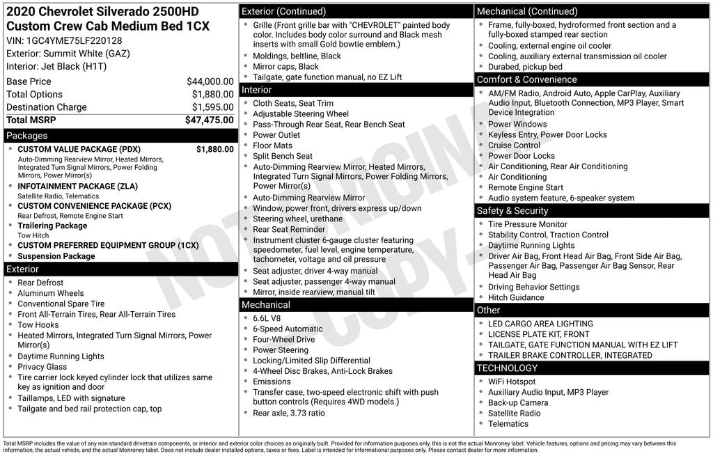 Vehicle pricing is believed to be accurate. Tax, title and registration are not included in prices shown unless otherwise stated. Manufacturer incentives may vary by region and are subject to change. Vehicle information & features are based upon standard equipment and may vary by vehicle. Monthly payments may be higher or lower based upon incentives, qualifying programs, credit qualifications, residency & fees. No claims, or warranties are made to guarantee the accuracy of vehicle pricing, payments or actual equipment. Call to confirm accuracy of any information.