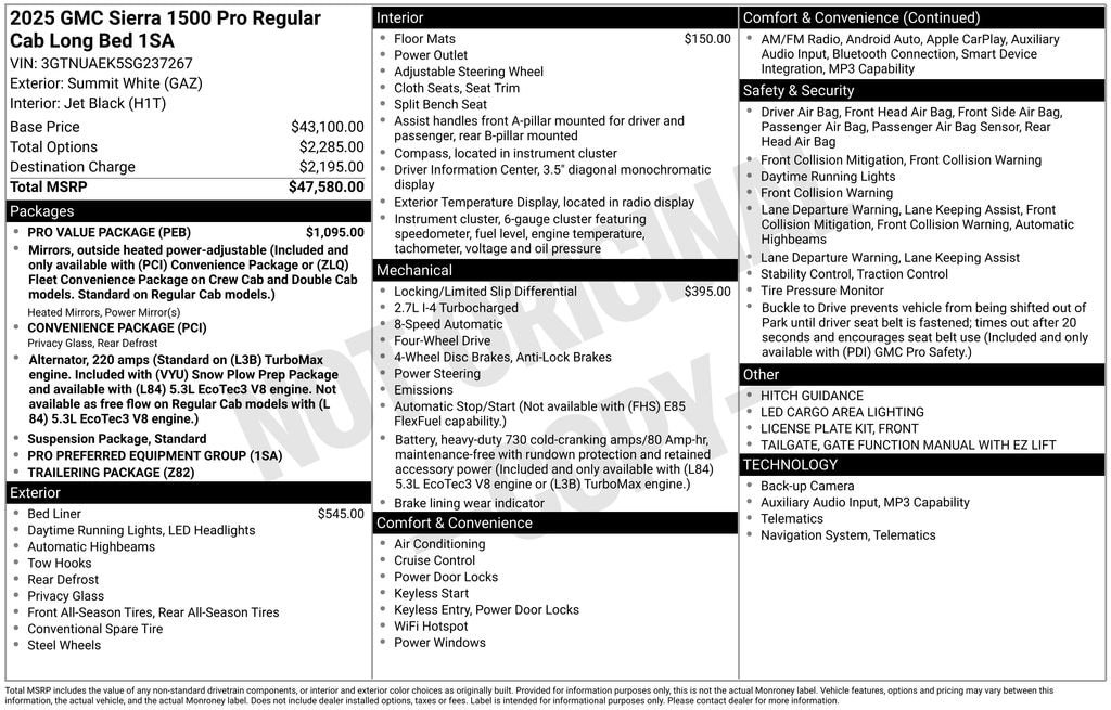 Used 2025 GMCSierra 1500 Pro Truck I4 Turbocharged DOHC 16V LEV3-SULEV30 310hp