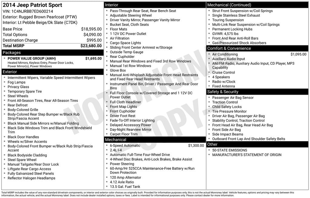 Used 2014 JeepPatriot Sport SUV I4 DOHC 16V Dual VVT