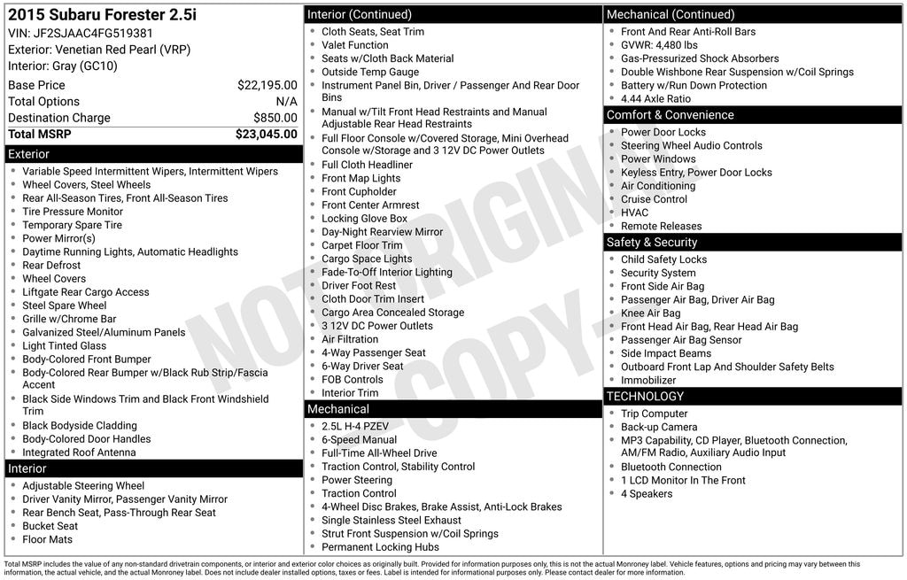 Used 2015 SubaruForester 2.5i SUV 4-Cylinder DOHC 16V VVT