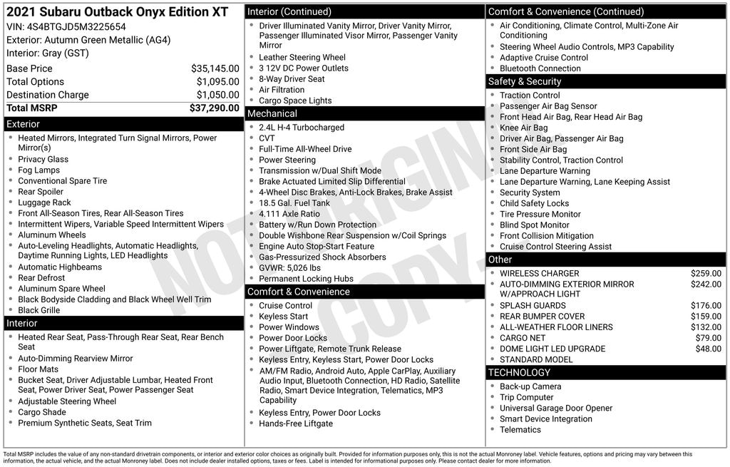 Used 2021 SubaruOutback Onyx Edition XT SUV DOHC